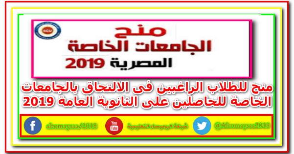 تنسيق الكليات 2019 كل ما يخص الجامعات الخاصة فى مصر الحد الادنى المصروفات الشروط والمطلوب طريقة التقديم عنواين واماكن وارقام تليفونات الجامعات الخاصة تابعوونا بعد قليل مع منح الجامعات الخاصة