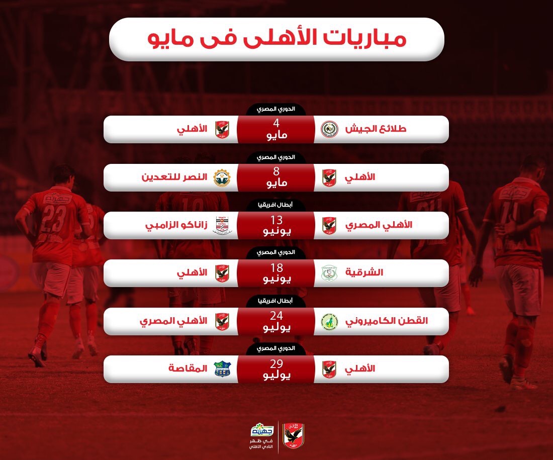اخبار الاهلى مواعيد مباريات النادي الأهلي خلال شهر مايو