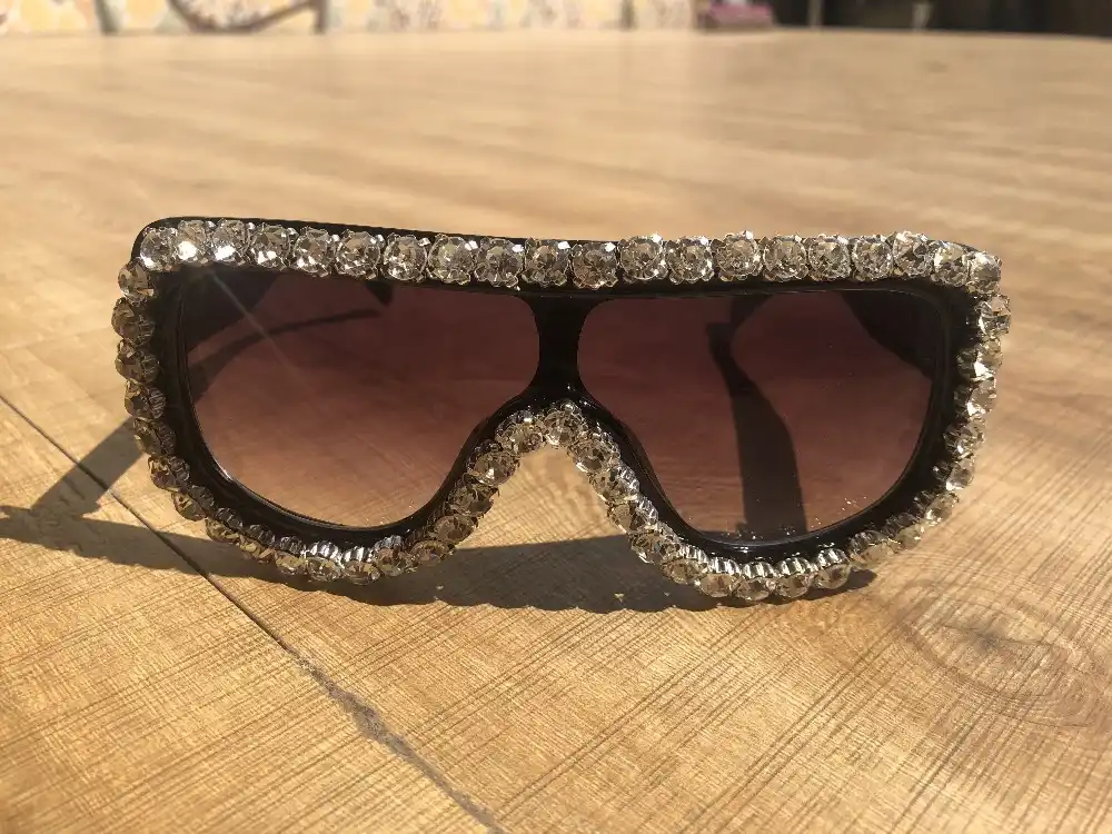 2019 كبيرة ظلال نظارات رجالي بلينغ الماس النساء نظارات شمسية Uv400 مستطيل المتضخم نظارات 2019 جديد Gafas دي سول Aliexpress
