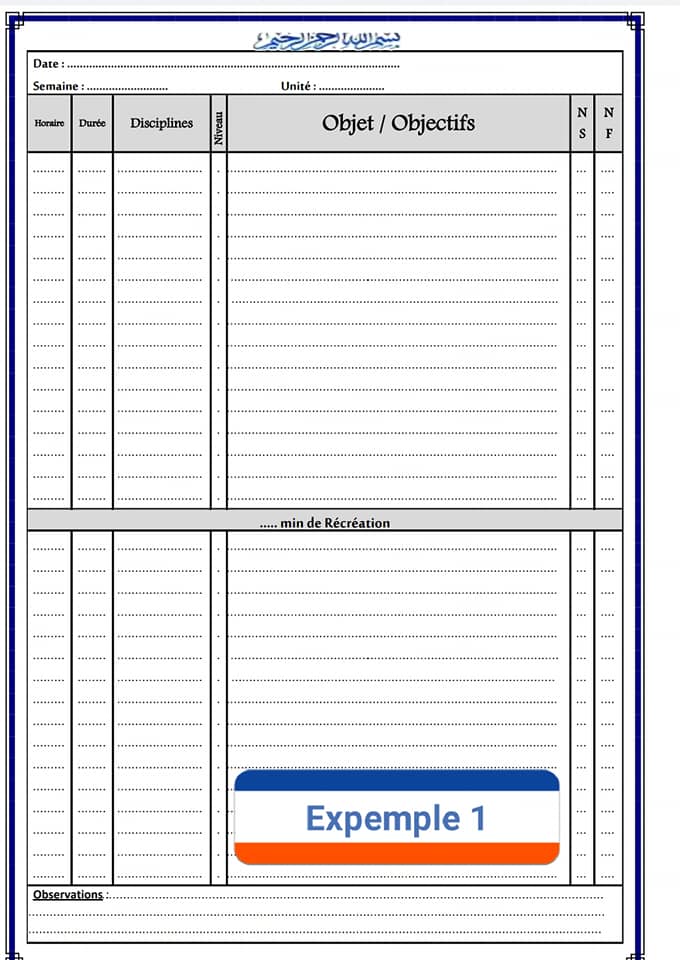 حصريا أوراق مذكرة يومية فارغة لكل مستوى على حدى وباللغتين العربية والفرنسية قايلة للتعديل