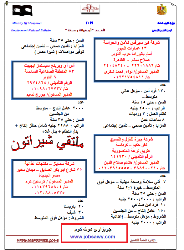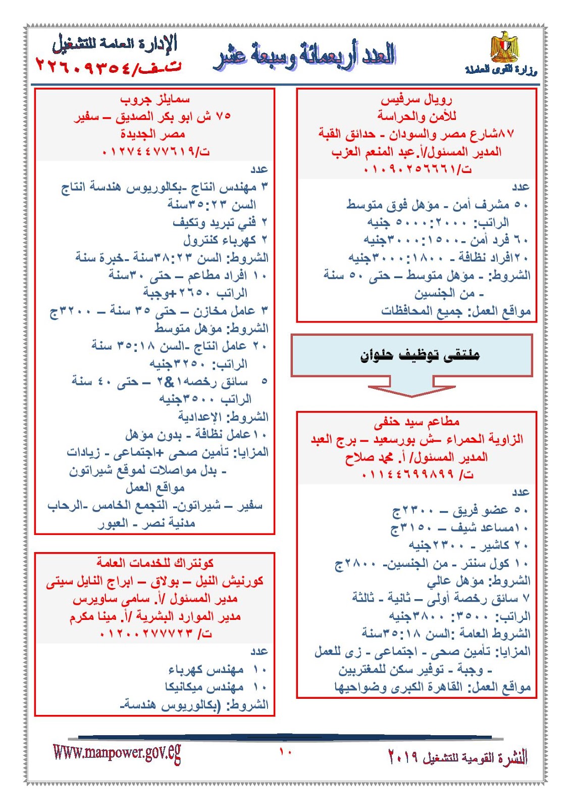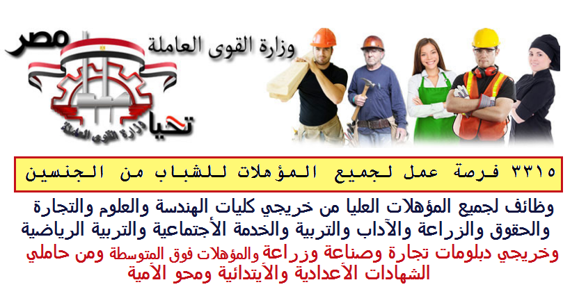 وظائف حكومية فى مصر القوى العاملة. وظائف وزارة التنمية المحلية مديرية القوى العاملة والهجرة بالقاهرة. أكد محمد سعفان وزير القوى العاملة أنه تم توفير 6 آلاف 193 فرصة عمل للذكور والإناث منها لذوى الاحتياجات الخاصة فى جميع التخصصات والقطاعات الوظيفية المختلفة بأجور مجزية تبدأ من 1200 لتصل إلى 5500 جنيه فى بعض المهن وطبقا. جميع الحقوق محفوظة لورازة القوى العاملة. وظائف حكومية فى مصر للدبلومات اليوم.