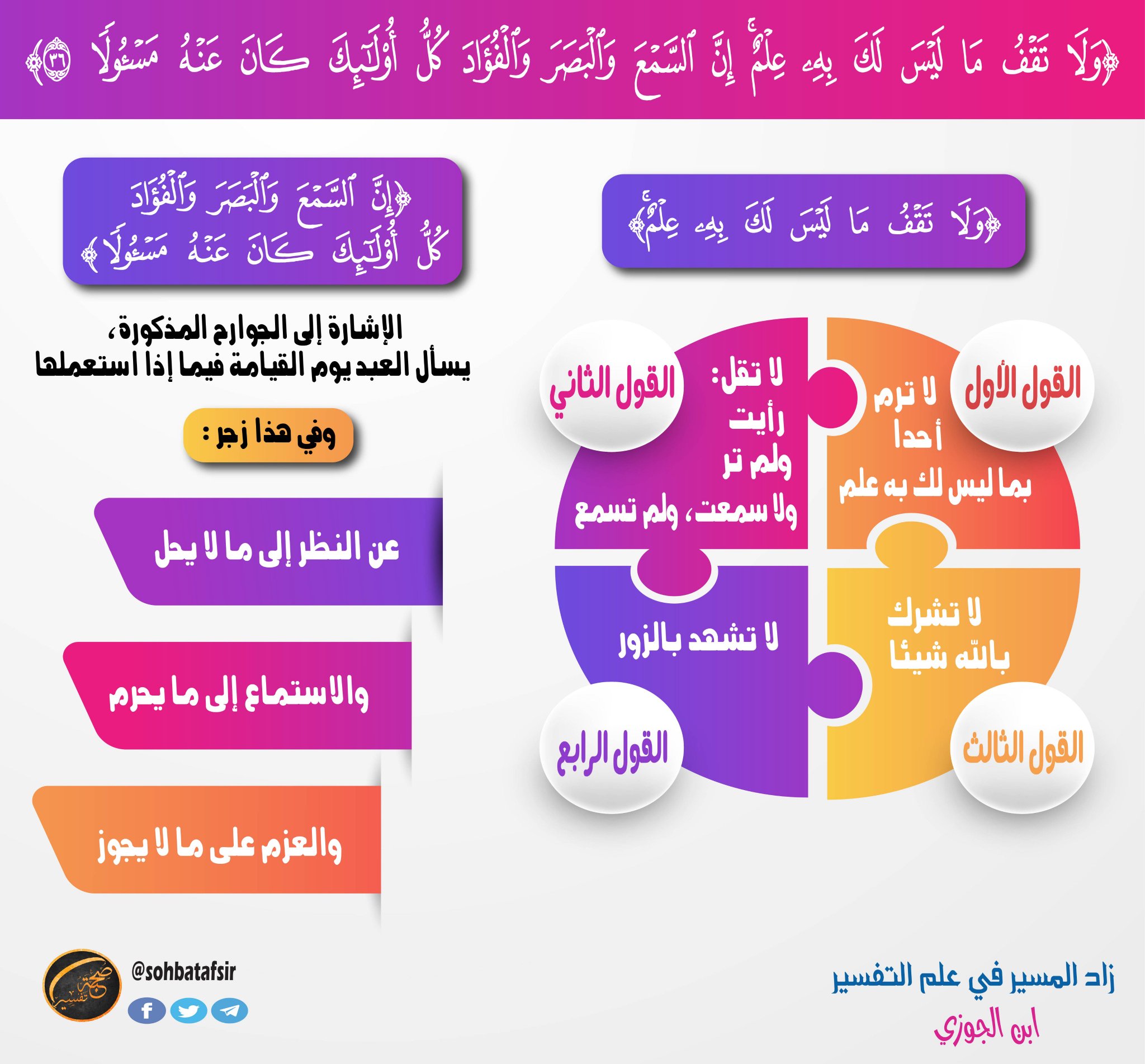 قلب داعيه معبرة رؤى On Twitter المسلم لا يت بع ما ليس له به علم فسوف ي حاسب ولا تقف ما ليس لك به علم إن السمع والبصر والفؤاد كل أولئك كان عنه مسؤلا Https T Co Bb5kmcrmx3